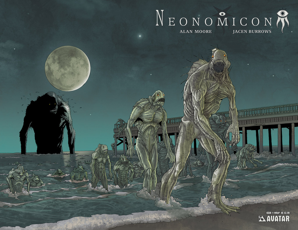 "Através do portal, em meio às ruínas da cidade afundada, Malone percebeu a figura de enormes feições - um rosto, ou a distorção de um rosto. As partes superiores daquela face eram lisas como a cúpula de um crânio humano, mas embaixo dos olhos, o rosto pulsava e se enrodilhava entre tentáculos. As pálpebras do tamanho de velas desfraldadas permaneciam fechadas, felizmente, mas tremiam como se fossem abrir."